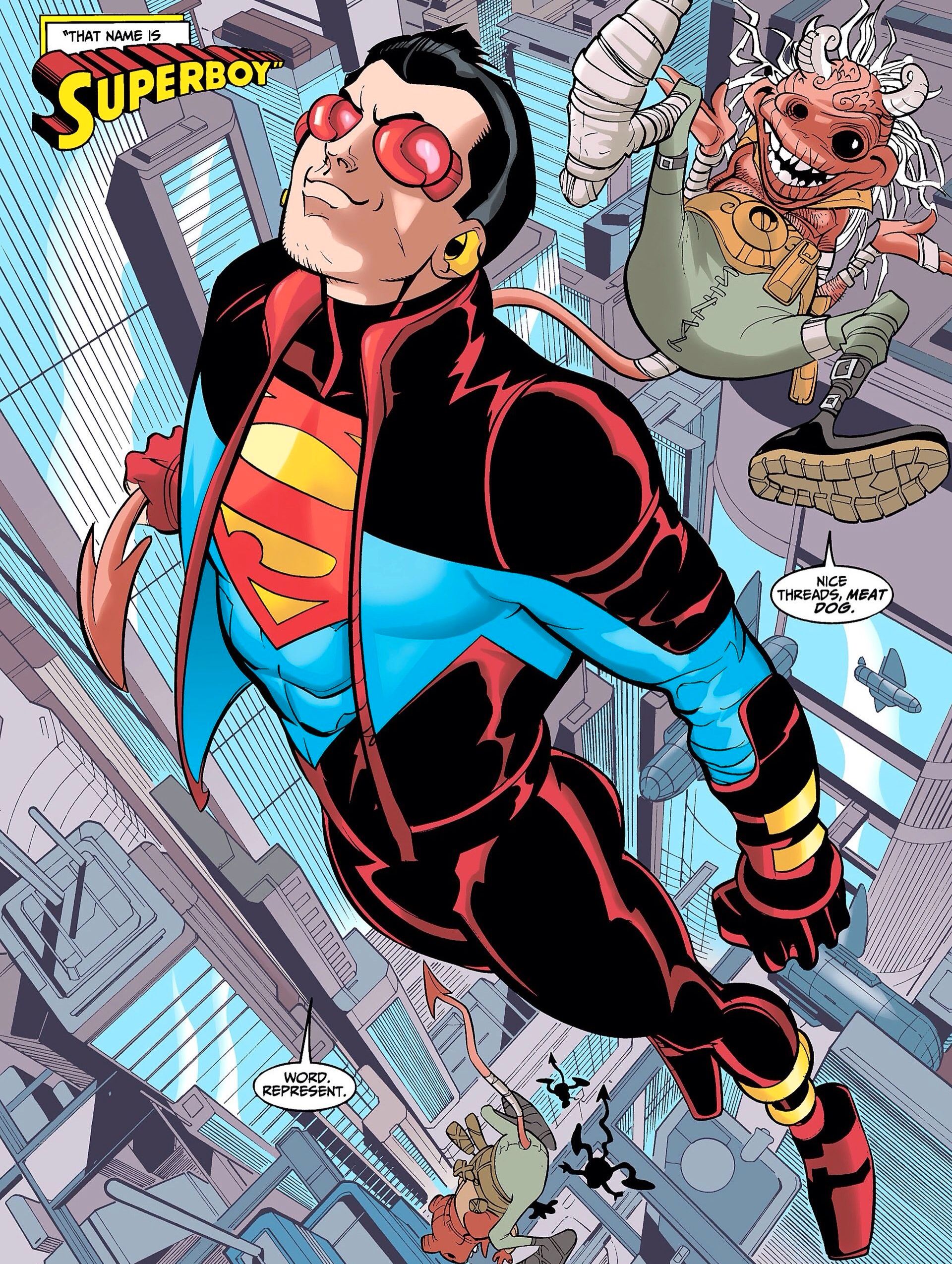 Tomar un descanso de Kon-El por un segundo da la oportunidad de ver a otro súper, Jonathan Kent. El hijo de Superman también llegó a tener las mismas habilidades que su padre. Era inevitable que eventualmente viniera a luchar contra el mal junto a otros niños de su edad (Damian Wayne era uno de ellos). Por supuesto que necesitaría un disfraz.