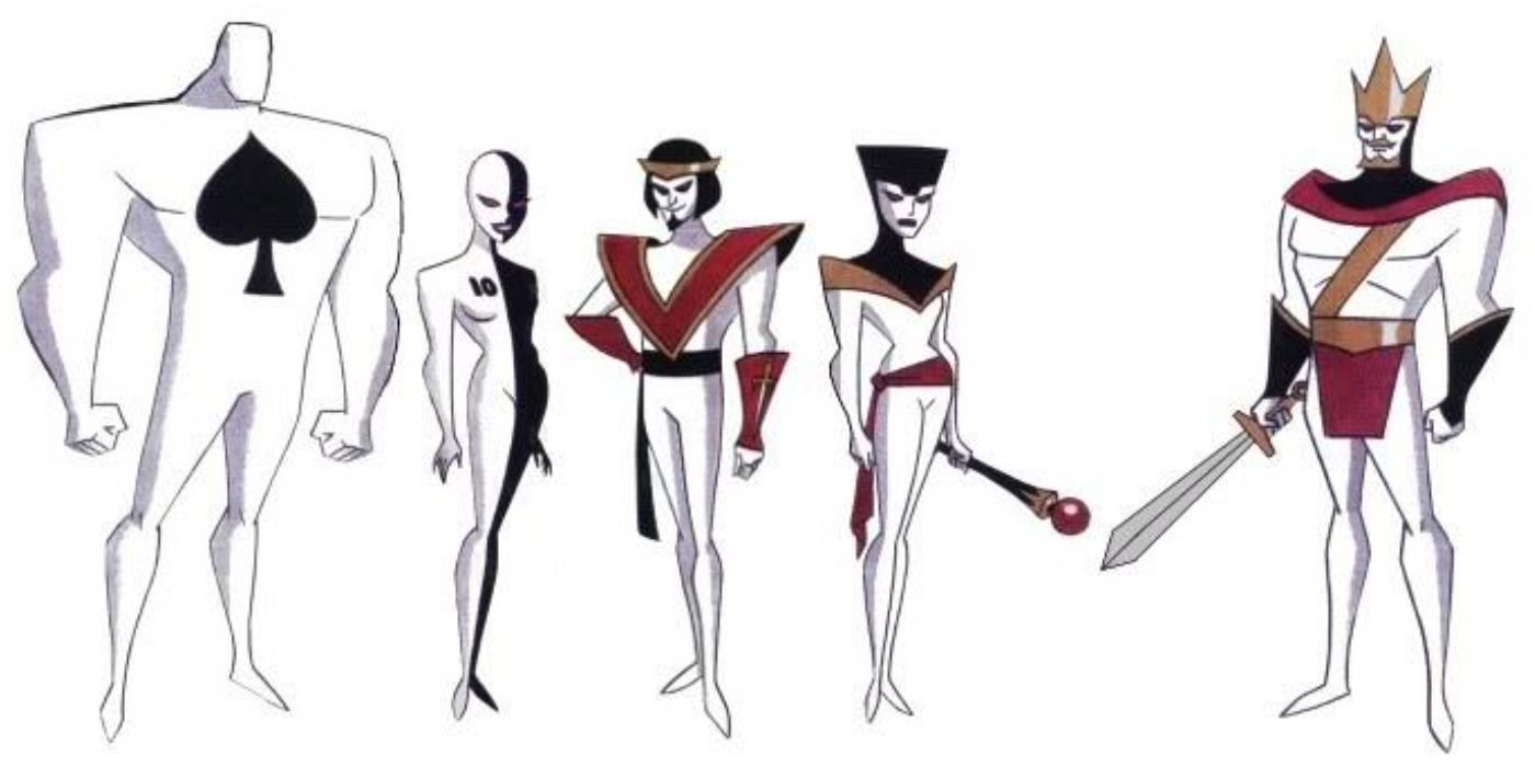 Batman Beyond introdujo en el Universo Animado de DC una pandilla bastante tradicional, la Royal Flush. Sin embargo, para adaptarse a la ambientación futurista y de ciencia ficción de la serie, ésta impregnó a la pandilla con algunos motivos futuristas, desde los aerodeslizadores modelados a partir de naipes hasta convertir a Ace en un androide.