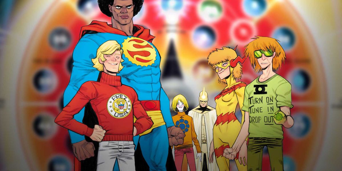 En lugar de una Liga de la Justicia, Tierra 47 tiene un Superman de Sol que lidera el Sindicato del Amor de Mundo Sueño con un poder floral muy lejano, hombre.