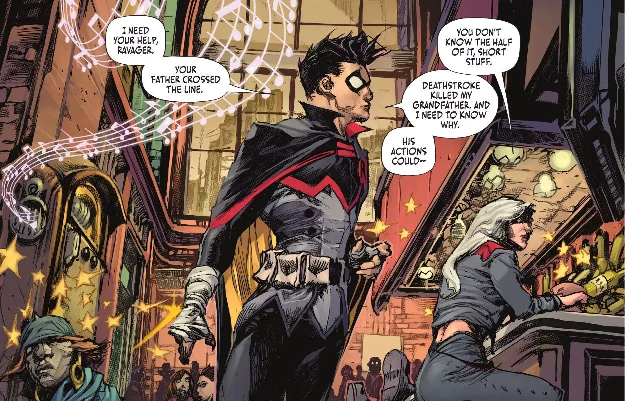 Batman #122 comienza en las escaleras de la Embajada de Markovia en Washington D.C., donde la Cabeza del Demonio ha encontrado su repentino final de la forma más anticlimática. Batman se encuentra en la escena del crimen con el Director del D.E.O., Cameron Chase, escudriñando cada mÃnimo detalle ya que el tiempo es esencial hasta que la disputa entre Deathstroke y Talia se extienda a las calles. Talia ya ha dado el primer paso, enviando un contingente de asesinos ninja para matar a Deathstroke en su propio Hightower. Mientras Damian y Ravager se disponen a saldar sus propias cuentas y venganzas, Batman se cuela en el Palacio de los Demonios en Nepal para obtener algunas respuestas. Mientras tanto, el largometraje de refuerzo se sitúa en el pasado mientras Batman y Deathstroke se enfrentan en los tejados de Gotham, pero algo falla en Terminator.