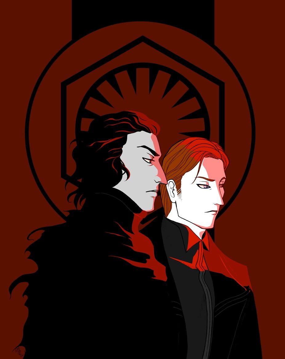 La artista Rakiah tiene una interesante visión de Kylo Ren y el General Hux para compartir con nosotros. Con estos colores negro, rojo y blanco y un aspecto limpio, este fan art parece una pieza de propaganda (lo decimos en el buen sentido), y el universo de Star Wars ciertamente tiene propaganda.