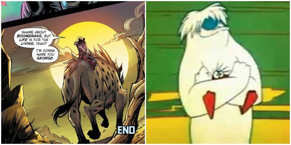 En el libro Dark Nights: Death Metal Guidebook, hay un capítulo centrado en Harley Quinn y su gran hiena. Después de que la hiena se exponga a la radiación, salva a Harley del Capitán Boomerang y Harley decide llamar a la hiena George.