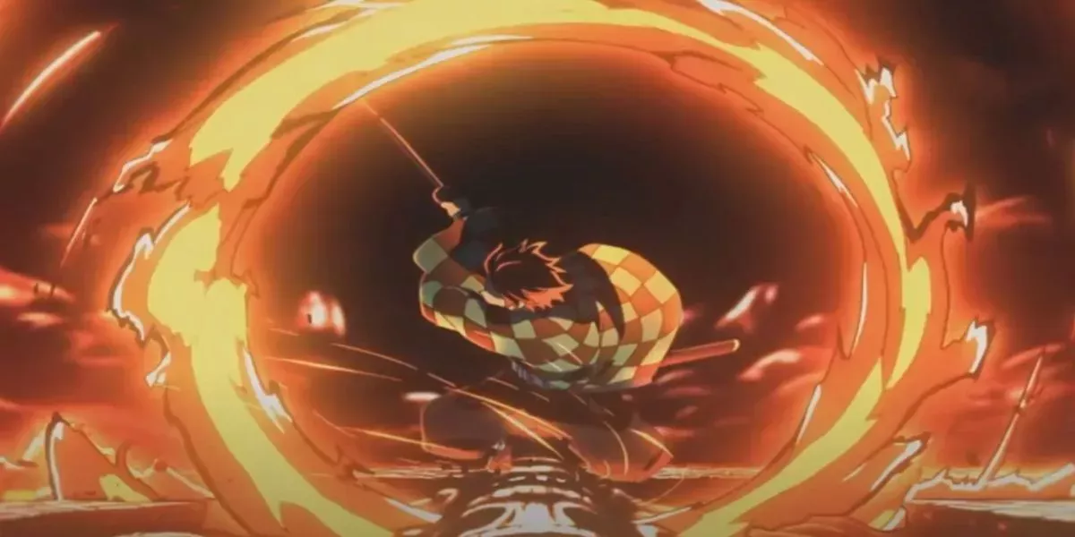 Aunque Tanjiro utiliza principalmente el estilo de Respiración de Agua en este punto, invoca al espíritu de su padre para que le proteja y pueda utilizar el Hinokami Kagura Clear Blue Sky para dar el verdadero golpe final contra Enmu.