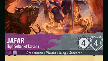 La arena del reloj de arena caracterÃstico de Jafar de la pelÃcula animada original atraviesa la obra de arte de otras cartas en el set, como Minnie Mouse—Defensora Intrépida y Lady—Perro Decisivo. También puede verse amenazando a personajes de una nueva licencia que se une a Disney Lorcana en Reinado de Jafar, Bambi. Y, por supuesto, con Jafar en juego, habrá varias nuevas cartas de tipo Ilusión que combinan bien con su habilidad como "Alto Sultán de Lorcana."