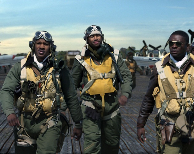 Si no sabes de que va la cosa, 'Red Tails' es una película que, dice, George Lucas llevaba mucho meditando. Unos 20 años. Va sobre un escuadrón de aviación negro en la Segunda Guerra Mundial. Al final, la ha dirigido Anthony Hemingway pero dicen los rumores hollywoodienses que Lucas ha dirigido unos cuantos re-takes porque no le gustaba el resultado.