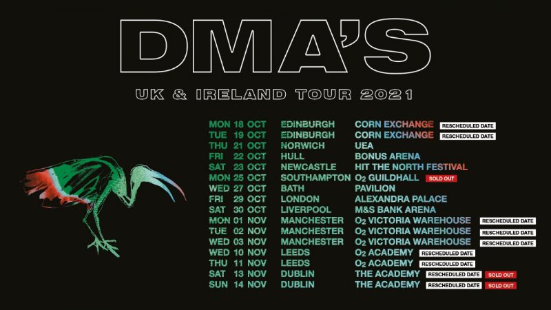 Los conciertos al aire libre de la banda en el Manchester Castlefield Bowl, el Millennium Square de Leeds y el Princess Gardens de Edimburgo han sido cancelados, y DMA's realizará conciertos especiales en interiores en estas ciudades en noviembre. Los poseedores de entradas para estos espectáculos serán contactados por su agente de entradas original con más detalles.