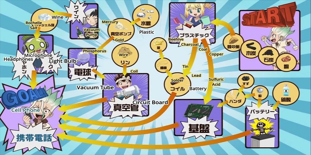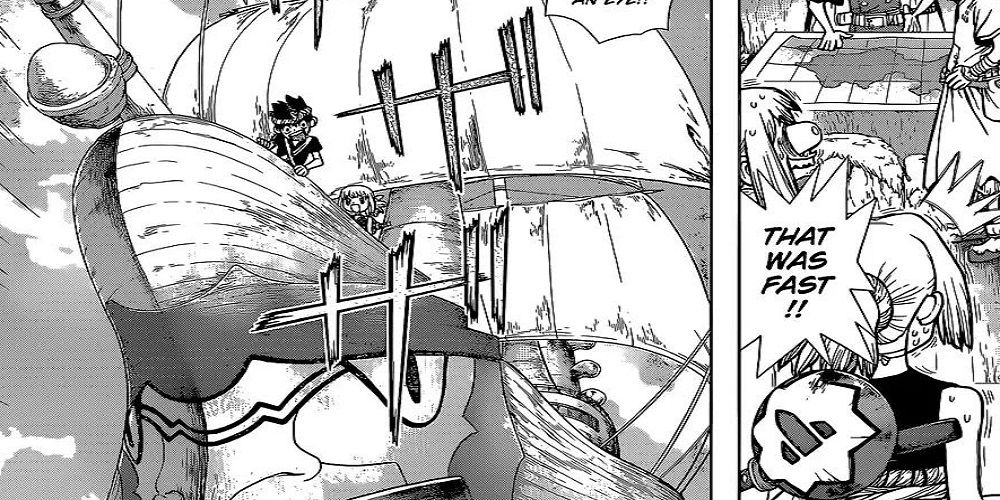 Otro invento que surgió como resultado de muchos inventos a lo largo del manga requería un salto en el tiempo. Pero la invención de Senku de un velero automatizado significaba que podían viajar largas distancias en cuestión de días, lo que significaba que podían llegar a lugares mucho más lejos de lo que nadie había llegado en los milenios transcurridos desde entonces.