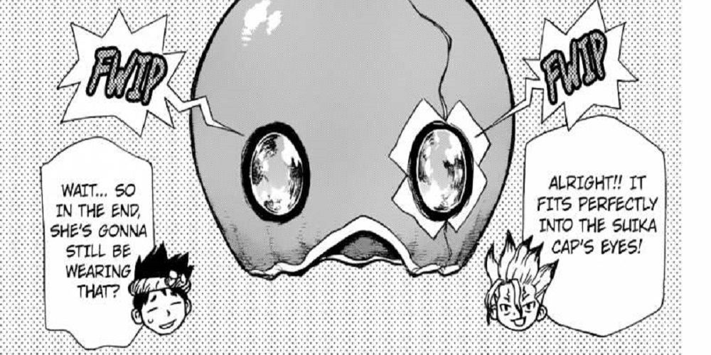 Senku fue capaz de fabricar unas gafas para Kinro que le ayudaran a ver mejor y a mejorar sus habilidades de combate en general, y también fue capaz de hacer lo mismo con la Suika. Esto hizo que el mundo fuera mejor para ambos y que su Reino de la Ciencia fuera mucho más útil a la hora de hacer las cosas a largo plazo.