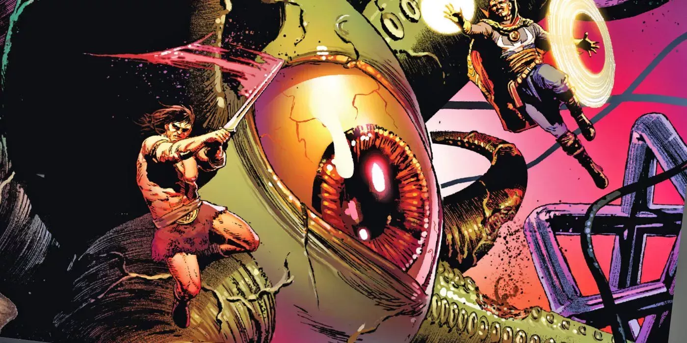 Sin embargo, en Savage Avengers, de Gerry Duggan y Patch Zircher, el Hechicero Supremo forma equipo con Conan el Bárbaro para luchar contra su mutuo enemigo y, finalmente, se da cuenta de que Shuma-Gorath, como todas las cosas, tiene su lugar y su papel en el multiverso, que se vería comprometido si llegara a encontrar realmente su fin.