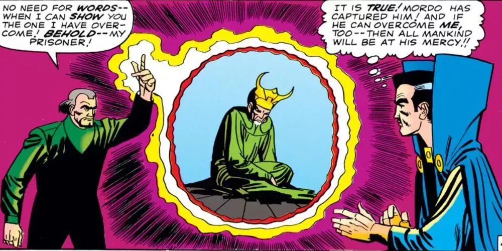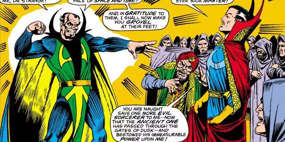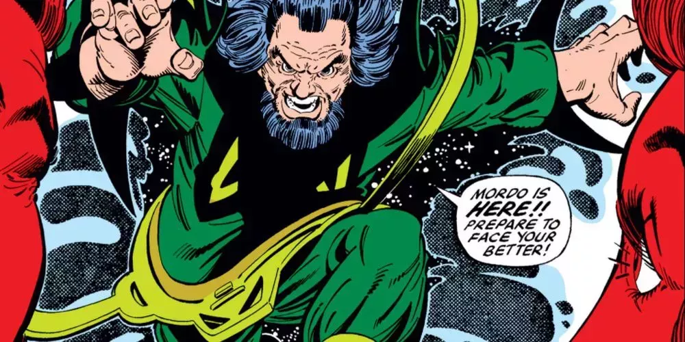 En la época de Strange Tales #130-137 de Lee y Ditko, Mordo es un villano en toda regla empeñado en la dominación mística. Sin embargo, es elevado por la ayuda que presta a la maliciosa entidad dimensional conocida como Dormammu. Inspirando al enemigo cinematográfico vislumbrado en el Doctor Strange de 2016, Dormammu busca entrar en la Tierra y envía a Mordo a atacar al Antiguo, cuya magia mantiene al villano a raya.