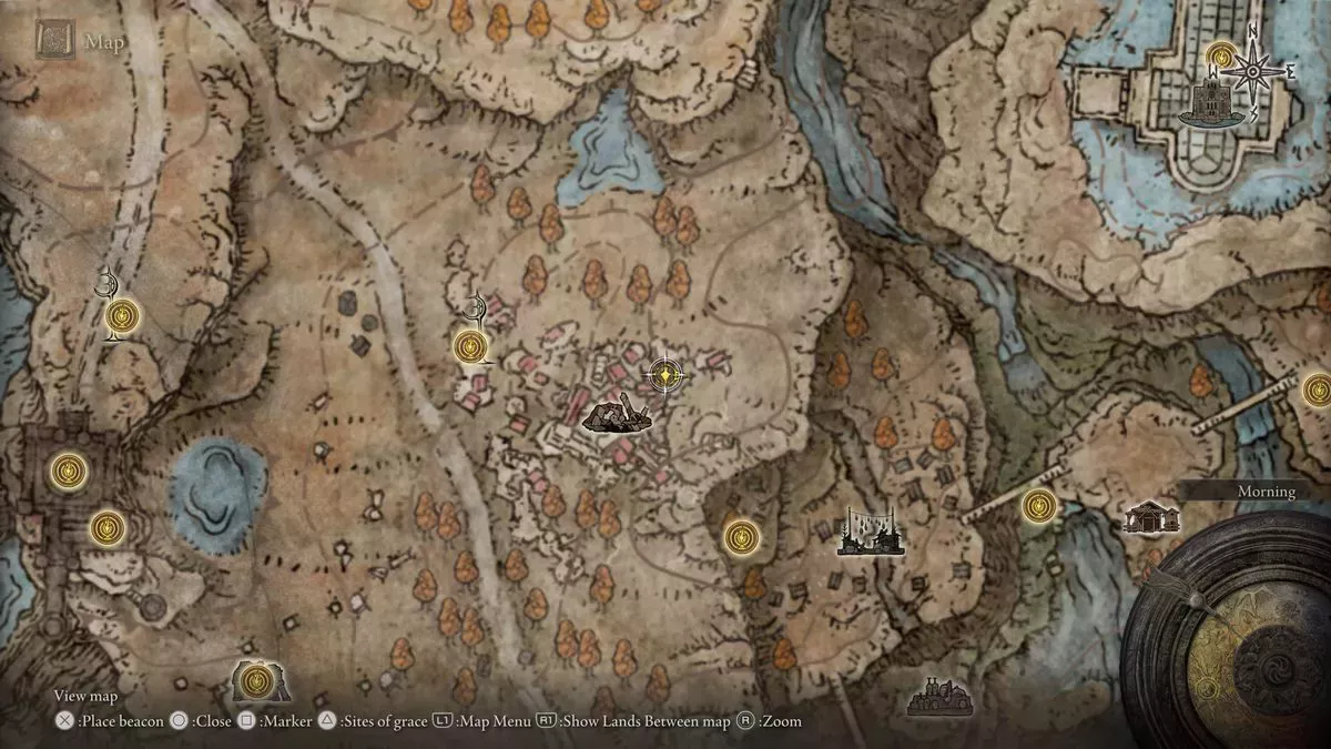 Para aprender el gesto O Madre, necesitarás acceder a la Aldea Bonny, que se encuentra al oeste de Scadu Altus y al suroeste de las Ruinas de Moorth. El gesto O Mother se encuentra justo al norte del icono del mapa de la Aldea Bonny, en el extremo norte de la masa terrestre de la aldea.