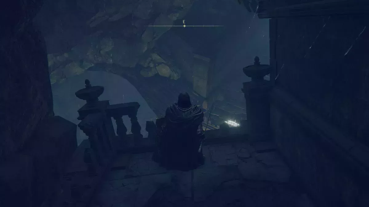 La mejor manera, y la más segura, de llegar a esa zona subterránea es desde un saliente en los restos rotos de las Ruinas de Moorth, que se ven más abajo.