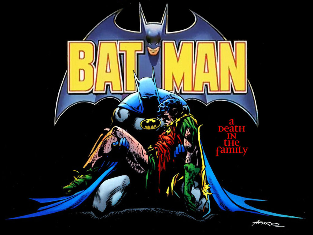 ‘Una muerte en la familia’ es, tal vez, el relato más dramático de la historia de Batman. En el mismo, el segundo joven en ser acogido por Bruce Wayne como su protegido Robin, Jason Todd, emprendía la búsqueda de su verdadera madre, la cual resulta estar trabajando para el Joker. En este emblemático arco argumental escrito por Jim Starlin y dibujado por Jim Aparo se le concedió a los lectores la posibilidad de decidir sobre el destino de Robin, y los lectores decidieron que este debía morir de manera brutal a manos de El Joker. Lustros después, claro, Jason Todd resucitaría, pero entonces conmocionó a los lectores y supuso un punto de giro dramático para Batman.