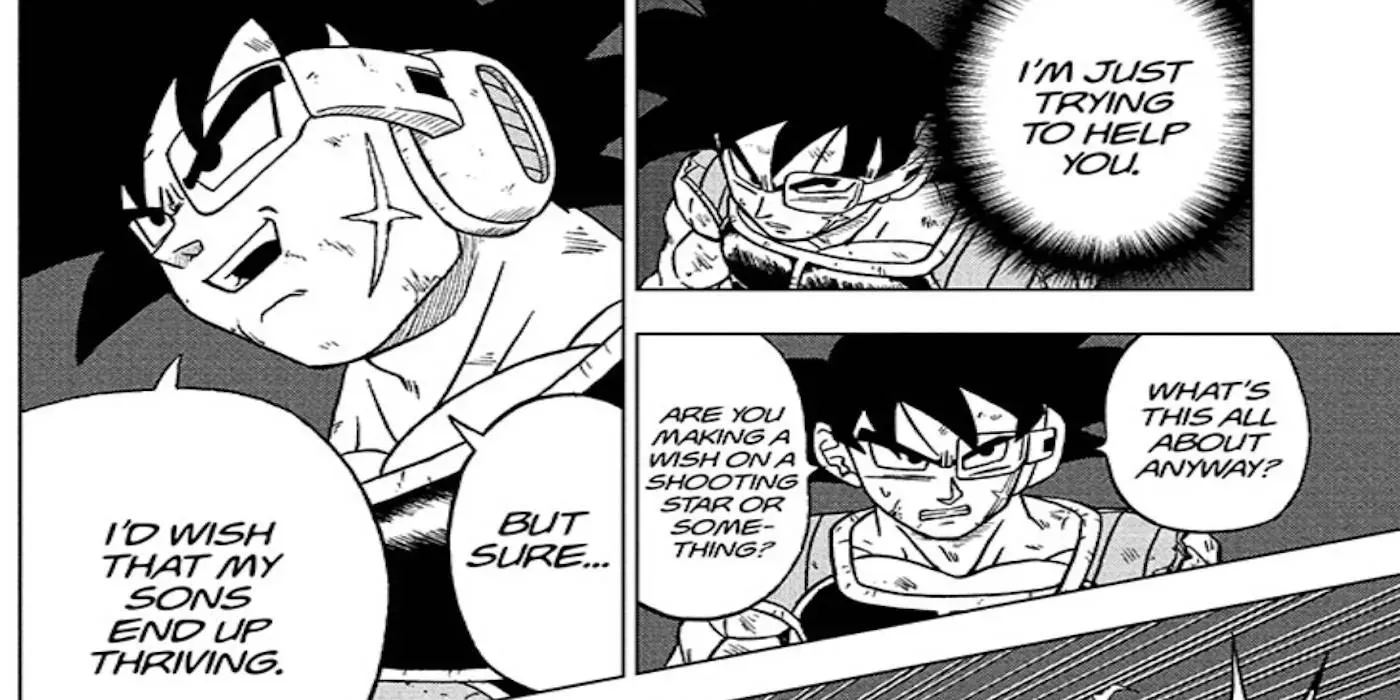 La extenuante batalla del manga Dragon Ball Super contra Gas da lugar a un esclarecedor flashback del anterior encuentro de Bardock con el villano de la Fuerza Heeter. Estos flashbacks revelan que Bardock es en realidad un Saiyan anómalo que estaba dispuesto a arriesgar su propia seguridad para ayudar a los demás y que tiene más en común con Goku de lo que se creía. El capítulo 83 de Dragon Ball Super, "Bardock vs. Gas, Parte 2", muestra un nostálgico deseo de Dragon Ball de Bardock al Dragón Eterno del Planeta Cereal, Toronbo. Bardock pide casualmente que "sus hijos prosperen", lo que puede prestarse a muchas interpretaciones.