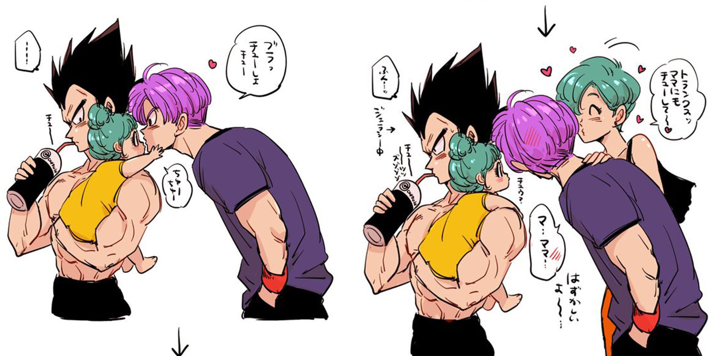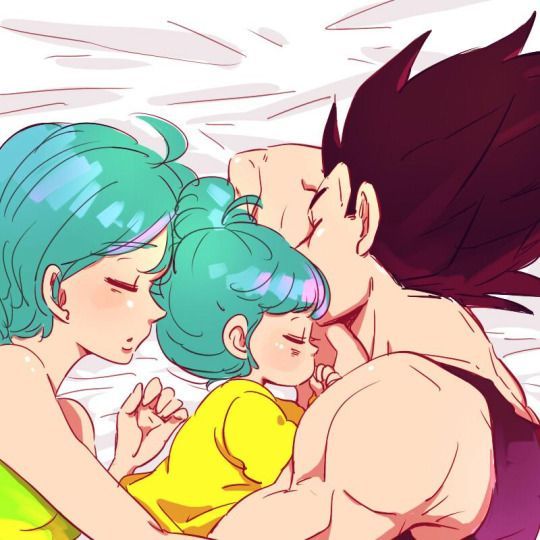 Ahora, esto es perfecto. Una madre humana normal de pelo turquesa y su marido intergaláctico acurrucados con su niña. Los fans que vean esto pueden perderse tanto en su tranquilidad que olvidan lo nerviosa y fácilmente agitada que es Vegeta normalmente. Un momento de paz. Una rara ocurrencia en la vida de un Príncipe Saiyan.