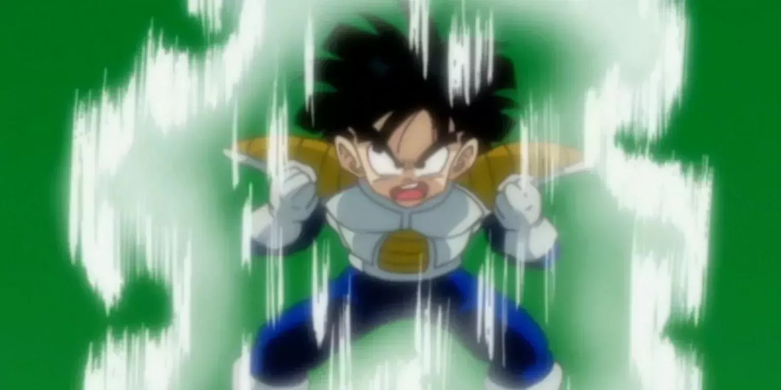 Durante la batalla, tras ver cómo su padre recibe una brutal paliza, Gohan libera parte de su inmenso poder oculto y se lanza de cabeza contra Raditz. El golpe rompe la armadura de Raditz y lo hace tambalearse el tiempo suficiente para que Goku y Piccolo acaben con él.