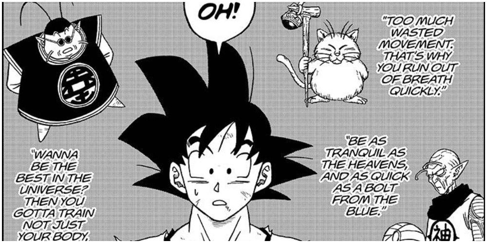 Muchos fans de Dragon Ball Super anime sintieron que Ultra Instinct le resultaba demasiado fácil a Goku después de que su propio Genki Dama se reflejara en él. El manga hace más de un esfuerzo para legitimar el logro de la forma de Goku. Durante una discusión con Whis, se da cuenta de que sus primeras enseñanzas con el Sr. Popo & Kami, Karin y Kaio, se centraron en agudizar su espíritu y la eficiencia en la batalla.