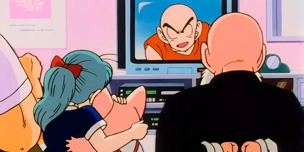 Durante el enfrentamiento entre los luchadores Z y los saiyans, el anime de DBZ añade el elemento de Bulma, Chi-Chi, el Maestro Roshi y otros que observan el combate en la televisión. Esto permite a los miembros de menor poder del reparto comentar la pelea y contribuir al ritmo de la batalla sin estar en peligro inmediato.