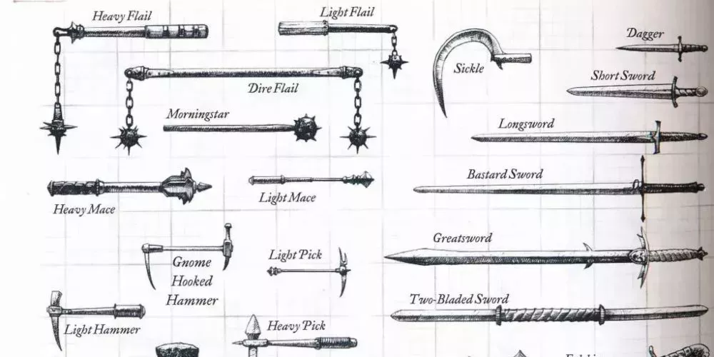 Por el contrario, 3. 5 estaba lleno de página tras página de armas, cada una con sus propias caracterÃsticas, reglas especiales y demás. Un luchador que empuña un sable largo y otro que empuña un hacha de guerra no tienen ninguna diferencia apreciable en 5e, pero tenÃan algunas diferencias en 3.5. Además, habÃa un montón de opciones de estorbo disponibles. Esta reducción en la variedad es vista por algunos como una desventaja en 5e, y por otros como un aumento en la simplicidad que vale la pena.
