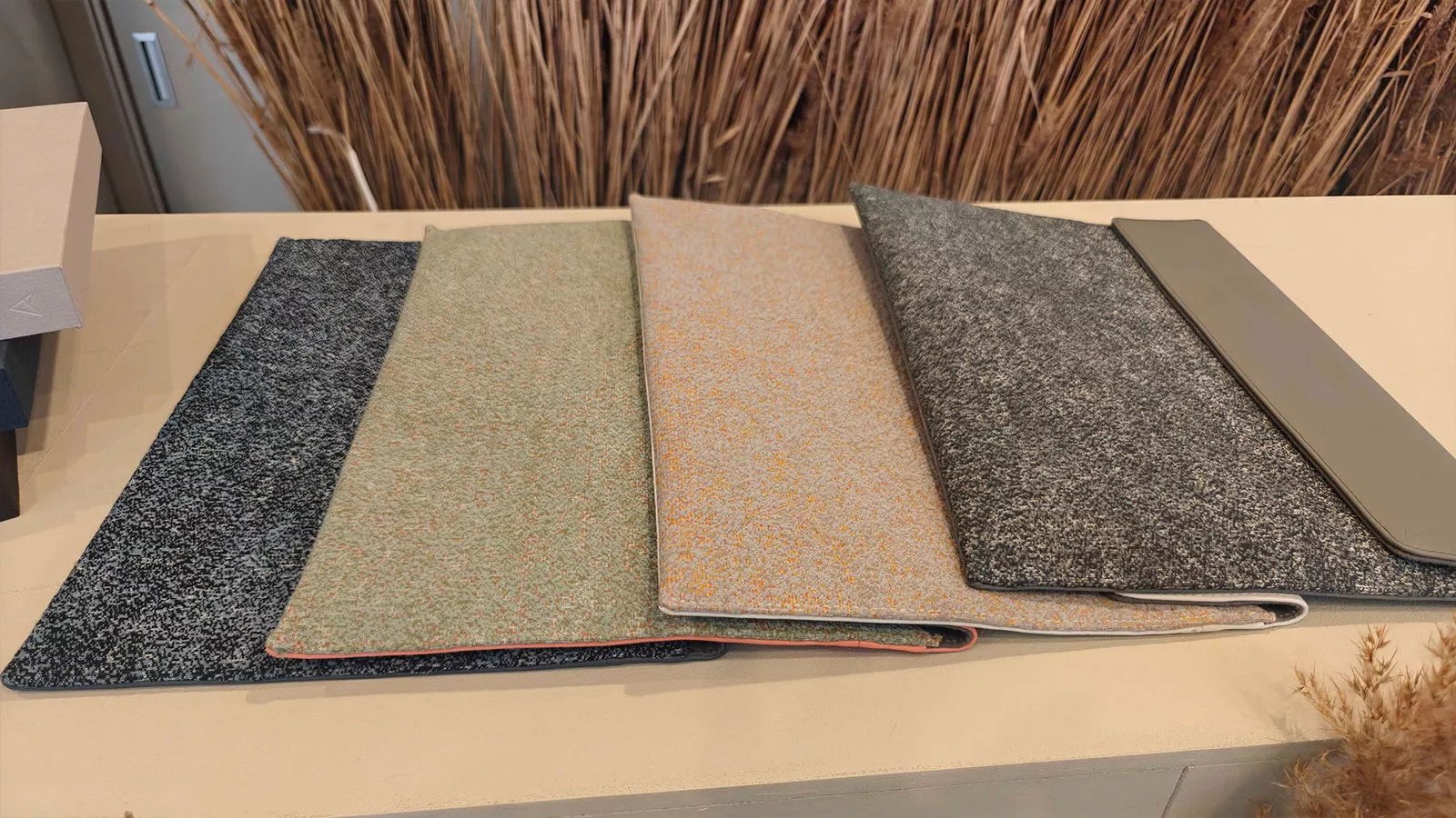 Obviamente, estas variaciones de color son impresionantes, pero la Edición Signature Ceraluminum de ASUS Zenbook también incluye una serie de extras para mejorar la experiencia premium y lujosa. Por ejemplo, la funda que la acompaña está hecha de la tela de tapicería de punto de Kvadrat Febrik, Arda. Este tejido es principalmente de lana y utiliza una técnica que reduce el consumo de agua, alineándose perfectamente con la inspiración ambientalmente consciente de ASUS para estas ediciones especiales. También se incluye en el kit un adaptador, cargador Type-C, un folleto, un bolígrafo ASUS y un mouse de Ceraluminum, reforzando aún más el enfoque en la innovación tecnológica.