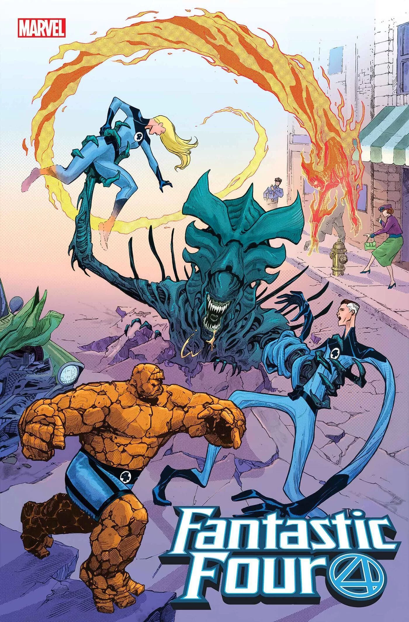 Empieza ahora.El número también incluirá una portada de una variante del tema Alienígena, que se hace al estilo de la portada icónica de Los Cuatro Fantásticos #1 de 1961, aunque con el FF luchando contra una reina xenomorfa en lugar de uno de los monstruos del Hombre Topo.