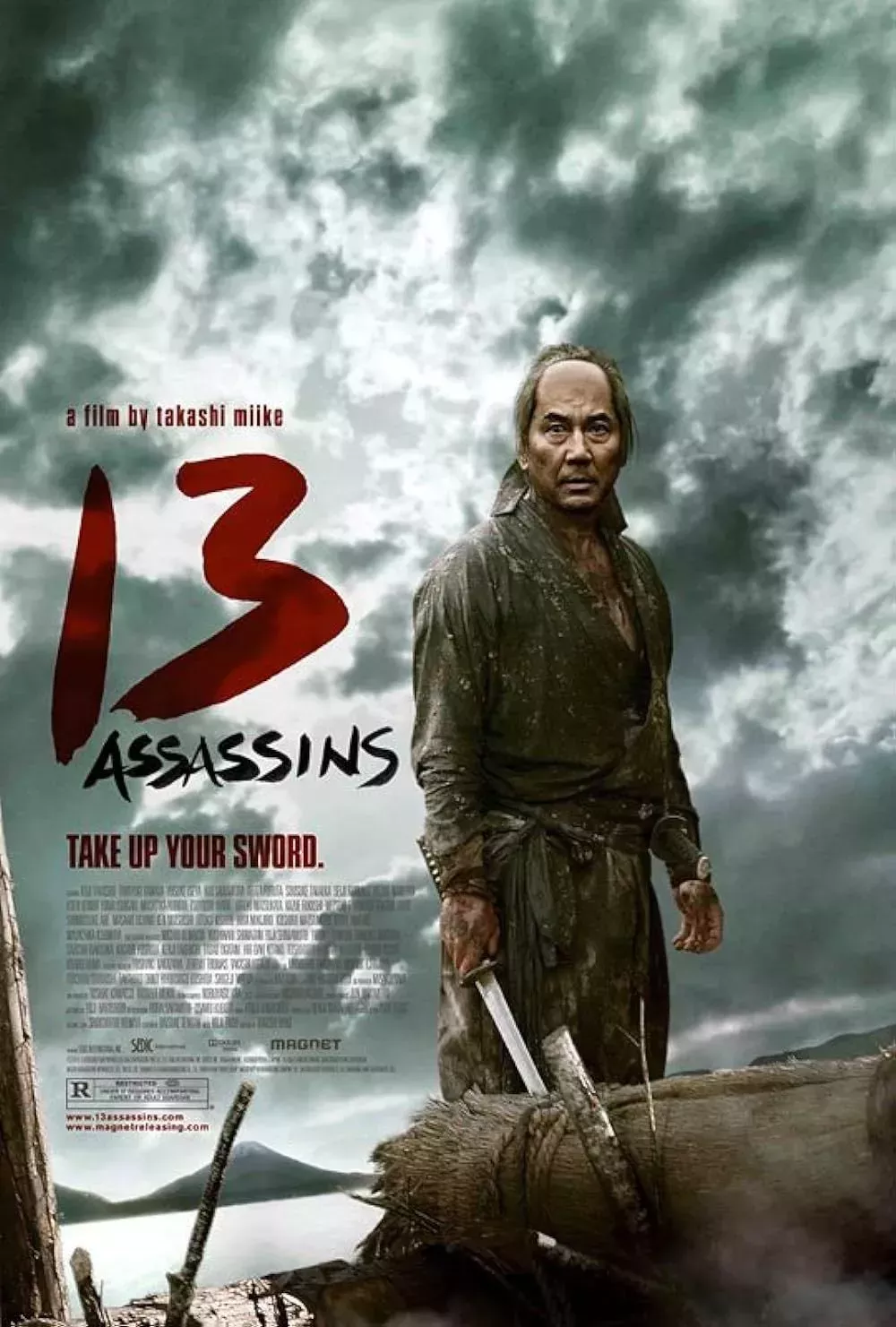 El remake de Takashi Miike de la película homónima de Eiichi Kudo se mantiene fiel al espíritu de la original, al tiempo que añade el talento del director para el espectáculo de acción a gran escala. 13 asesinos sigue a un grupo de samuráis (y un cazador) que planean emboscar y matar a un señor corrupto antes de que pueda ser nombrado miembro del Consejo del Shogunato.