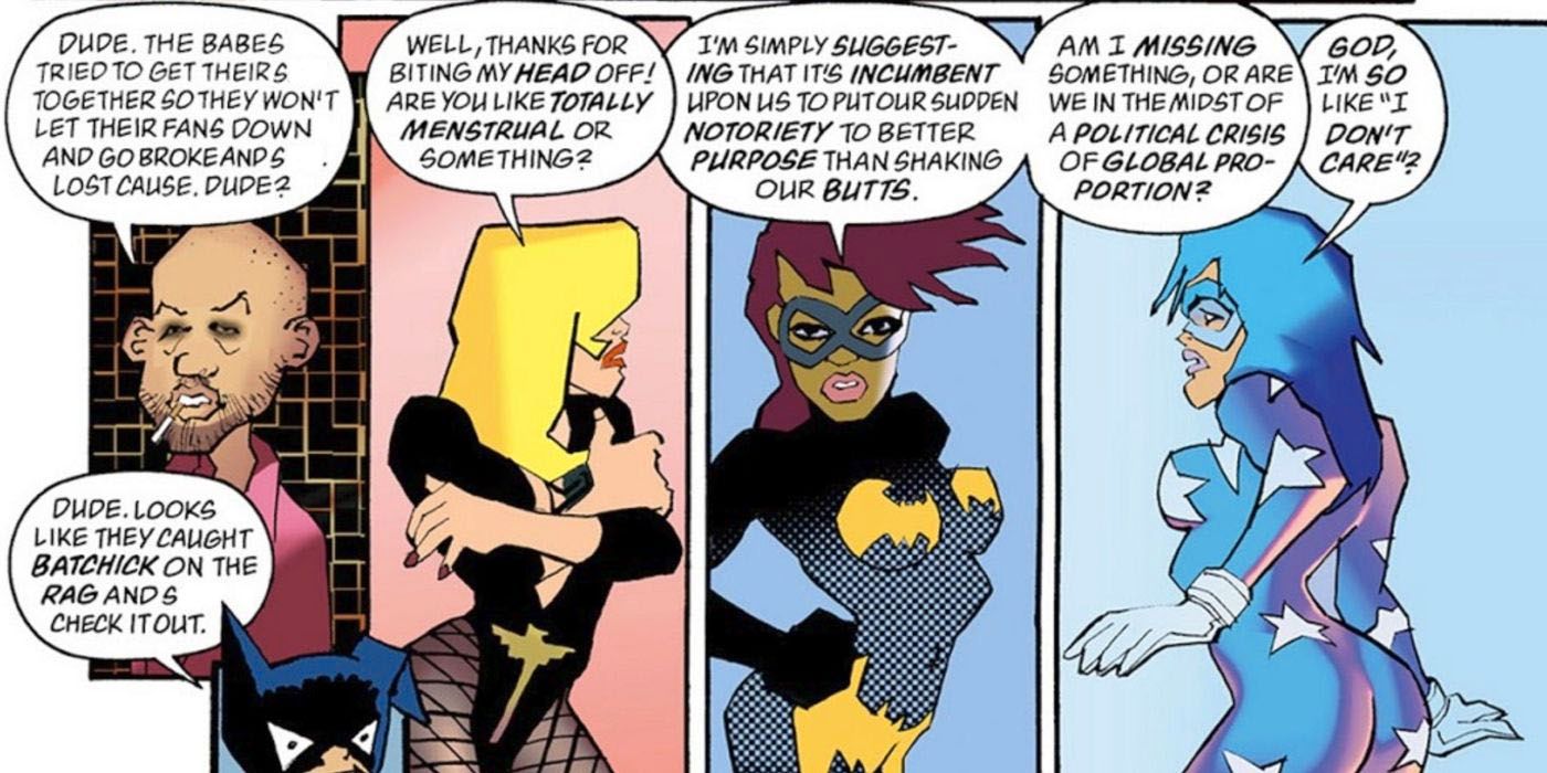 Había un grupo de chicas pop llamado Superchix, un presidente de los Estados Unidos que era en realidad un holograma, y una pelea entre Superman y un robot-dinosaurio. Además, la combinación de colores era kitsch y chillona, lo que le daba a los personajes un aspecto bastante extravagante.