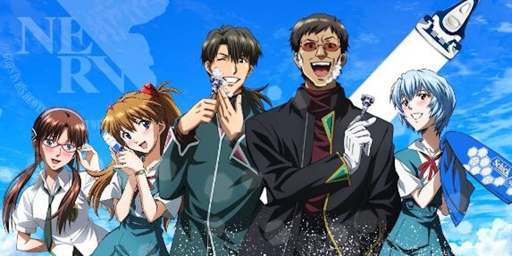 Este patrocinio quizá tendría sentido si Gendo se afeitara alguna vez en la serie, pero es todo lo contrario a su enfoque. Las maquinillas de afeitar tienen el mismo color que las unidades de EVA, e incluso hay accesorios y figuras con temática de EVA que pueden sostener las maquinillas de afeitar cuando no están en uso.