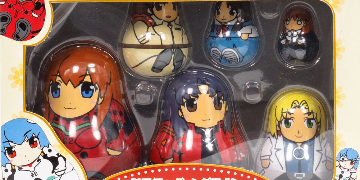Las muñecas Matryoshka, conocidas coloquialmente como muñecas rusas, son un agradable artefacto cultural que ha adquirido un atractivo universal. Es un juguete bonito que también es una forma creativa de expresión, e incluso es posible contar una historia a través de las figuras sucesivamente pequeñas. Japón tiene una cierta fascinación por la imagen de la Matryoshka y Evangelion no es inmune a la transformación de la muñeca nido. Al principio, el modelo más común se basaba en Rei, y cada muñeca representaba una faceta diferente de su dañado carácter. Sin embargo, hay otros conjuntos disponibles que destacan una gama más amplia del reparto de Evangelion en lo que es un estilo chibi sorprendentemente lindo.