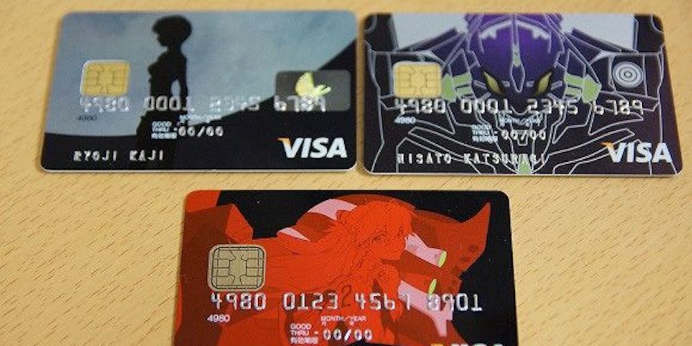 En la sociedad hay muchos artículos superficiales que no necesitan ser elegantes. Algunos ejemplos son los artículos relacionados con las instituciones financieras, como los cheques o las tarjetas de crédito, que ahora presentan una serie de diseños convencionales que conectan idealmente con su clientela. Evangelion es popular, pero no es exactamente una serie que uno asociaría para decorar una tarjeta de crédito. Sin embargo, VISA emitió tres diseños únicos de tarjetas de crédito de Evangelion . Irónicamente, es muy posible que algunos de los fans más apasionados de Evangelion utilicen exactamente estas tarjetas de crédito para comprar la gran cantidad de artículos de Evangelion que existen.