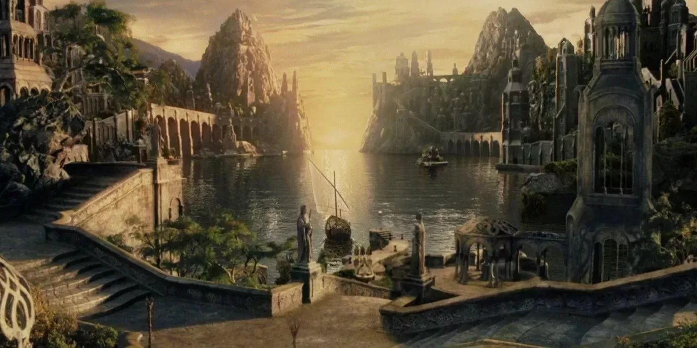ElSeñor de los Anillos concluye con Elrond, Galadriel, Gandalf, Frodo y Bilbo dejando la Tierra Media para siempre. Los elfos y el mago llevan cientos de años planeando su viaje, pero a los dos hobbits se les ofrece el paso a Valinor debido a su asociación con el Anillo Único.