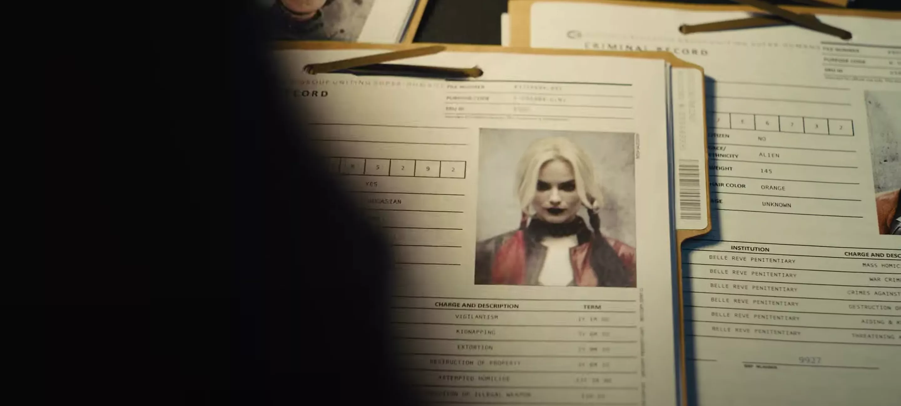 En uno de los fotogramas tras el expediente de Harley Quinn, se puede ver el de Mongal. La mayorÃa de sus delitos están cortados, pero los visibles pintan un cuadro espantoso. El primero de la lista es el asesinato en masa. Sin embargo, no hay detalles sobre cómo se produjo el hecho. Otro de los delitos enumerados es el de crÃmenes contra la humanidad. Esto podrÃa incluir una amplia gama de cosas y se ha visto antes en el DCU cuando el Joker utiliza con frecuencia actos de bioterrorismo en Gotham City. Pero, con la herencia de Mongal ligada a un dictador tirano, estos crÃmenes podrÃan ser parte de su deseo de conquistar la Tierra para su padre y matar a los que se oponen a ella.