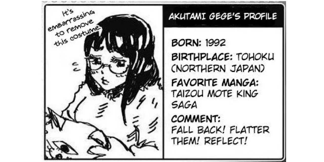 Akutami tampoco ofrece una mirada a su vida personal. Sus notas de autor, aunque coherentes y amables, no revelan ninguna información personal. Akutami las utiliza para arrojar más luz sobre aspectos potencialmente confusos del capítulo, compartir anécdotas divertidas sobre su proceso de escritura e incluso burlarse de algunos de los personajes que ha creado, pero nunca hay información que ayude a construir un perfil sólido del misterioso mangaka.