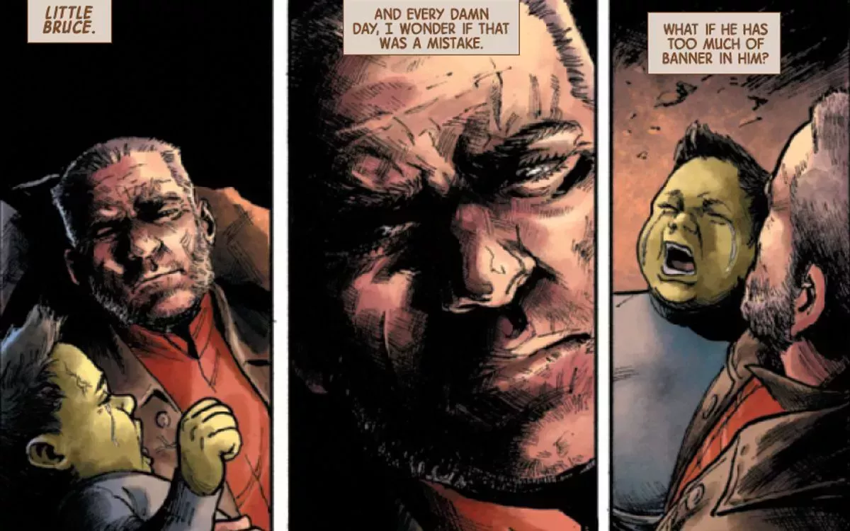 Wastelanders: Wolverine #1 (de Steven S. DeKnight, Ibrahim Moustafa, Neeraj Menon y Cory Petit de VC) vuelve a una de las versiones más aterradoras del Universo Marvel hasta la fecha, en la que Logan se queda vagando por el desierto del futuro en busca de algo para alimentar al bebé Hulk atado a su espalda. En esta realidad, la versión original del Monstruo de Jade se transformó en un grotesco sádico cuyos hijos fueron los responsables del asesinato de la familia de Logan. En un acto de represalia lleno de emoción, el antiguo X-Man se abrió camino a través de todo el clan Banner, destruyendo a todos menos al bebé Bruce. Aunque el niño sigue siendo inocente, Logan se enfrenta a oscuros pensamientos derivados de la preocupación de que este niño pueda llegar a ser como su padre.