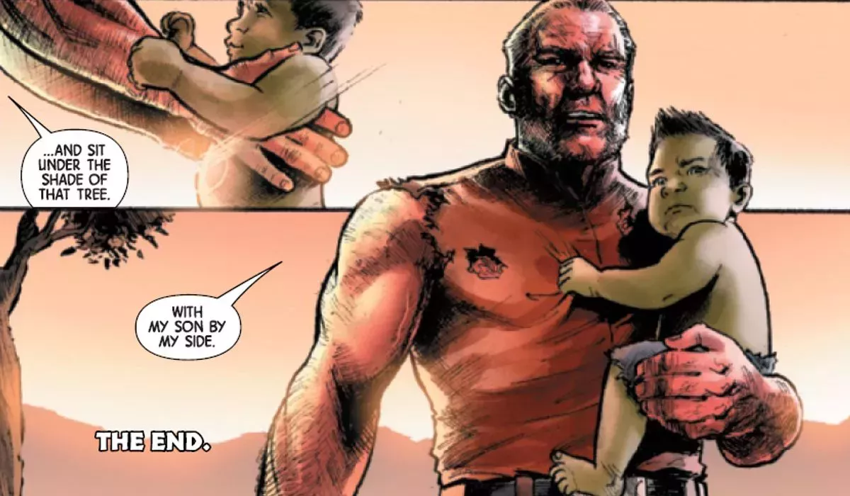 En los momentos finales del número, se vislumbra lo que le espera a Logan y a su nueva y poderosa carga, y por lo que parece está planeando volver a una vida relativamente tranquila de granjero que es mucho más adecuada para un niño.