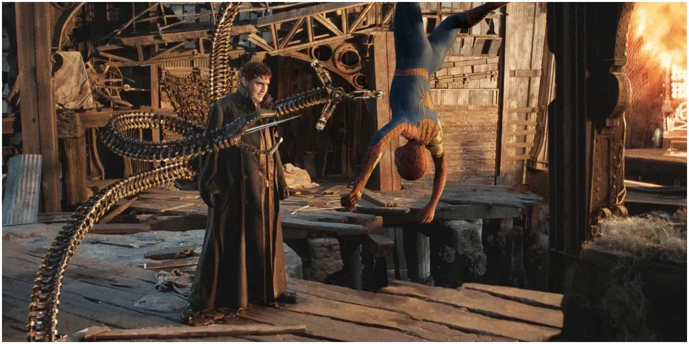 Más adelante en la película, Doc Ock va a reunirse con Harry Osborn, quien le dice que Peter Parker toma las fotos de Spidey y que él sabrá dónde encontrarlo. Ock acaba tomando a Mary Jane como rehén, pero también es salvada por Spider-Man, que revela su verdadera identidad a Ock y a MJ. Finalmente, Octavius domina sus brazos metálicos y se sacrifica para destruir la peligrosa máquina de fusión. Se rumorea mucho que el Doc Ock de Spider-Man: No Way Home será el mismo de Spider-Man 2.