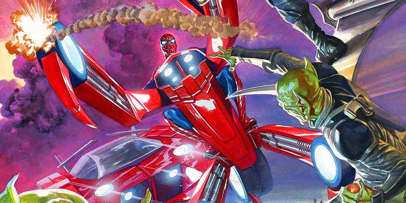 Alex Ross es un artista clásico en muchos sentidos. Su representación de los héroes de Marvel tiende a hacer eco de los grandes artistas de la Edad de Plata que le precedieron, lo que hizo que su Hombre Araña fuera icónico y anacrónico. Ross alcanzó la prominencia con su serie limitada de Marvels, que relató las historias de origen de muchos héroes de Marvel, incluyendo al Hombre Araña, para un público de los 90. Su estilo clásico de pintura sigue siendo el punto de referencia para muchos incluso hoy en día. Ross recientemente pintó casi treinta portadas de variantes intemporales para Marvel, sólo algunas de sus mejores portadas.