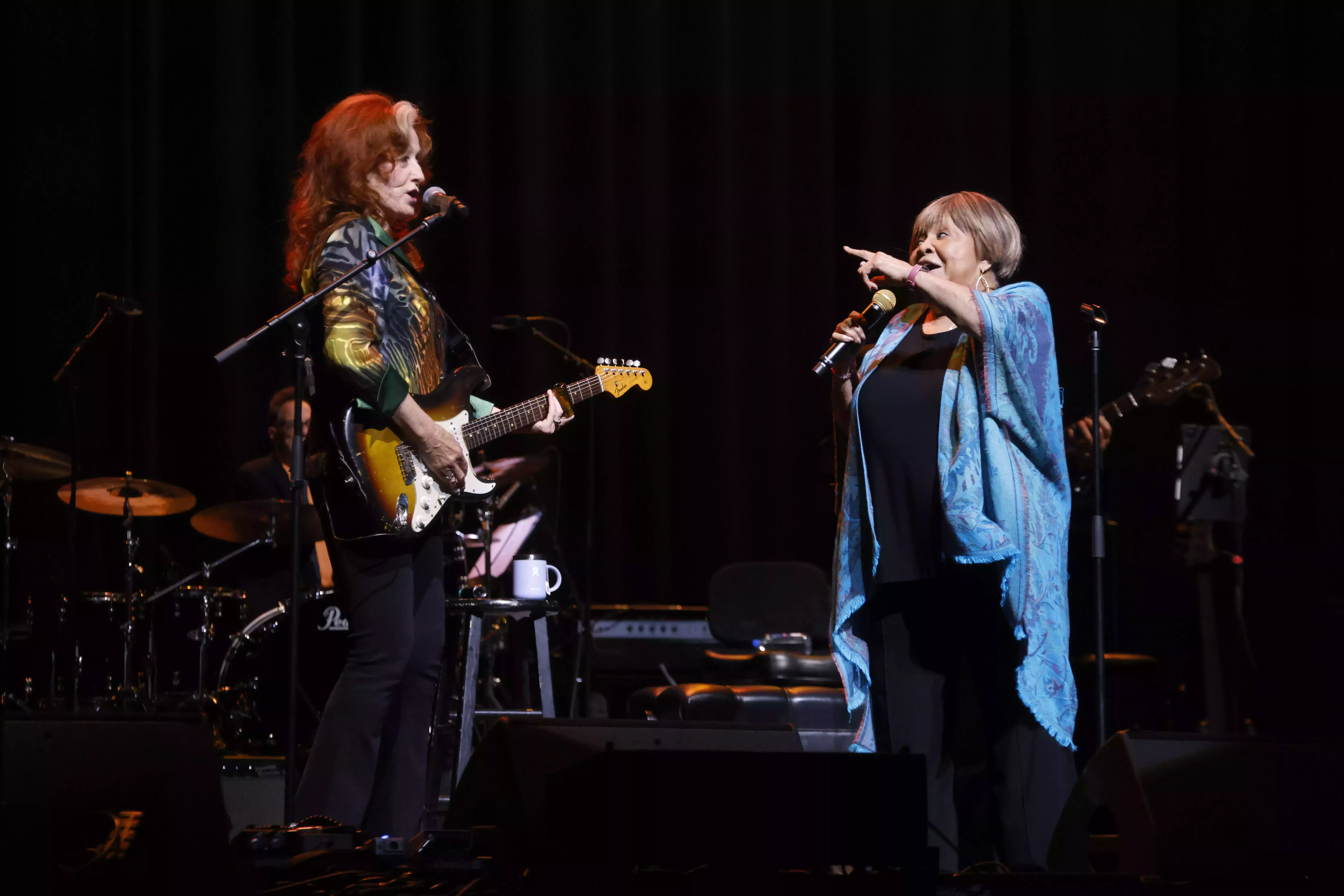 Las sociedades de admiración mutua tienen una forma curiosa de expresarse cuando Staples está en modo ocurrente. Cuando sacó a Raitt cerca del final del concierto para cantar con ella "I'm on My Way" casi al final de la velada, hubo algunos abrazos fervientes, y Staples bromeó: "Me agarra cada vez que puede", y Raitt se explicó: "Tienes un secreto, quiero saber cuál es". Staples es probablemente una de las pocas artistas que podría decirle a la cantante y guitarrista "Come on, little girl"."Tras el número que compartieron, la leyenda no paró de pronunciar el nombre de Raitt y añadió: "Pops [el padre de Mavis] solía decir: 'Es un trocito de cuero, pero está bien puesta'".