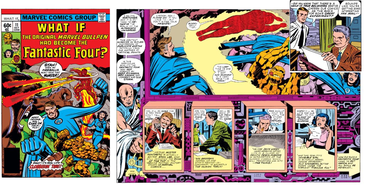 Marvel's What If? ha proporcionado a los lectores algunas de las historias más extrañas y locas del Universo de Marvel, pero pocas igualan la locura del número 11, donde los Marvel Bullpen fueron los que recibieron los poderes de los Cuatro Fantásticos. En el número, Stan Lee, Jack Kirby, Sol Brodsky y Flo Steinberg se transforman en superhéroes después de que una caja llega a su oficina y los rocía con rayos cósmicos.