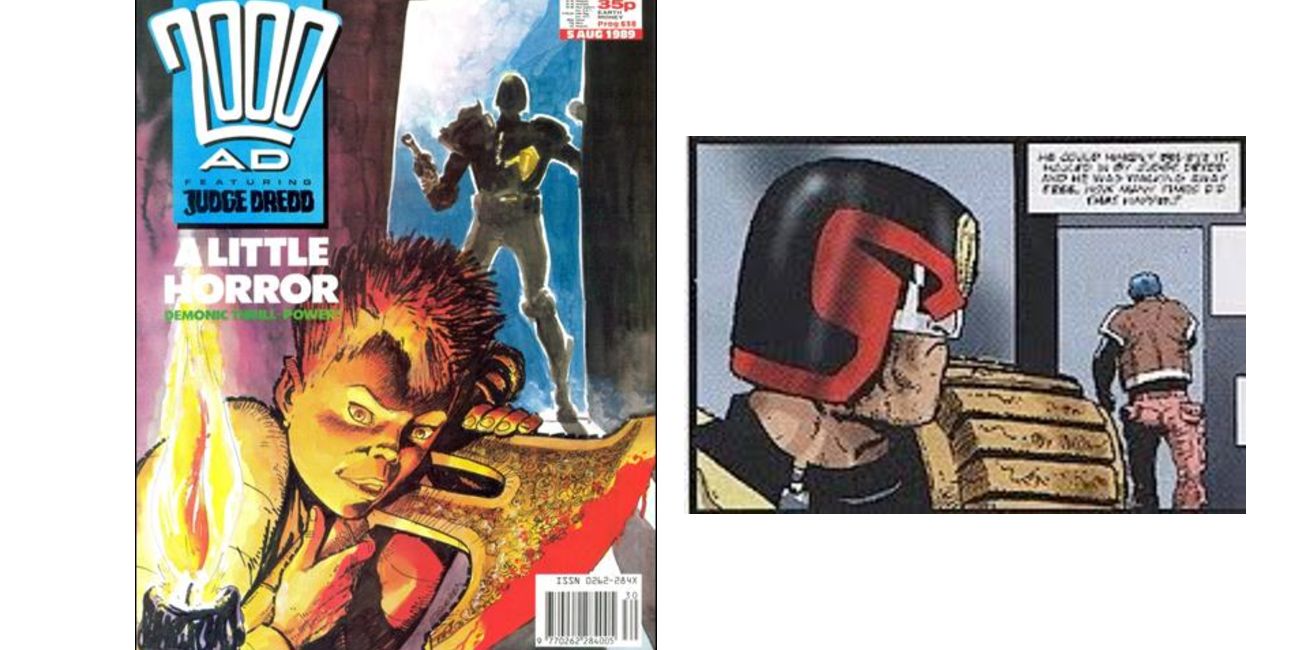 2000 AD es la revista británica de comics de ciencia ficción publicada por primera vez por IPC Magazines en 1977. Las historias de esta serie de antologías presentan personajes como el Juez Dredd y el Perro de Estroncio. En el número 638, John Wagner y Carlos Ezquerra escribieron una corta historia de 6 páginas protagonizada por un joven Jack Kirby. En la historia, el joven Kirby convoca a un Demonio, que se parece mucho a la creación de Kirby, El Demonio Etrigan de DC Comics. La historia da un giro oscuro cuando el juez Dredd se encuentra con la escena del crimen de los padres del joven Kirby, brutalmente asesinados.