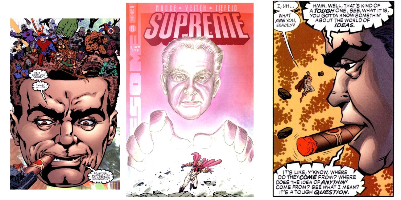 En su Supreme: The Return #6, de Awesome Entertainment, Alan Moore tiene a Supreme viajando al Himalaya, donde se encuentra con personajes similares a los creados y hechos famosos por Jack Kirby. A medida que su aventura continúa, Supreme se encuentra con un ser parecido a un dios que se parece a la enorme cabeza de Jack Kirby fumando un cigarro mientras los dos se encuentran y conversan.