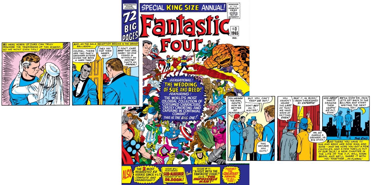 Reed Richards y Sue Storm van a la capilla, y se van a casar en los Cuatro Fantásticos Anual #3. No sólo es un "Quién es quién" del Universo Marvel mientras los dos se preparan para casarse, sino que como cualquier otra boda en los cómics, los villanos ven esto como la oportunidad perfecta para atacar y arruinar las festividades,
