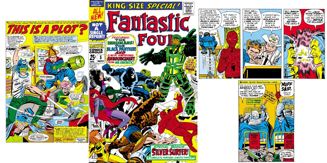 Los Cuatro Fantásticos #5 presentaron una historia de respaldo con Stan Lee y Jack Kirby explicando a sus lectores cómo desarrollaron la trama de sus cómics. En "This Is A Plot", Stan y Jack corren desenfrenadamente en su estudio de rodaje mientras rebotan ideas y líneas argumentales entre ellos, mostrando cómo su loca y extraña imaginación creó los diferentes conceptos. Esta representación de Kirby es también posiblemente la primera vez que se muestra con su icónico cigarro.