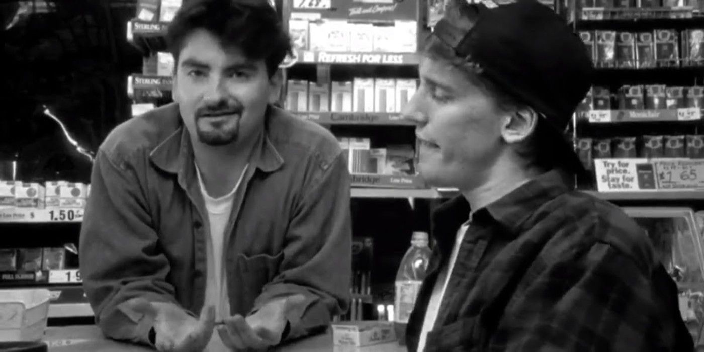 Empieza ahora.Para aquellos que no estén familiarizados con el debut como director de Smith en 1994, Clerks fue una comedia independiente de bajo presupuesto de "un día en la vida" sobre Dante Hicks y Randall Graves, dos amigos holgazanes que trabajan en trabajos insoportables en una tienda de Nueva Jersey y en una tienda de alquiler de videos sentados uno al lado del otro. Ninguno de los dos disfruta realmente de su trabajo - un chiste corriente es la frecuencia con la que Dante le dice a la gente que "ni siquiera debería estar aquí hoy" - así que pasan el tiempo involucrándose en prácticamente todo lo demás, desde cuestiones de relaciones hasta partidos de hockey o conversaciones sobre la Guerra de las Galaxias. La última, una de las primeras instancias del característico diálogo de Kevin Smith sobre la cultura pop, se destacó entre los cinéfilos por ofrecer una introspección extrañamente surrealista sobre las implicaciones morales de hacer explotar algo tan descaradamente malvado como la Estrella de la Muerte.