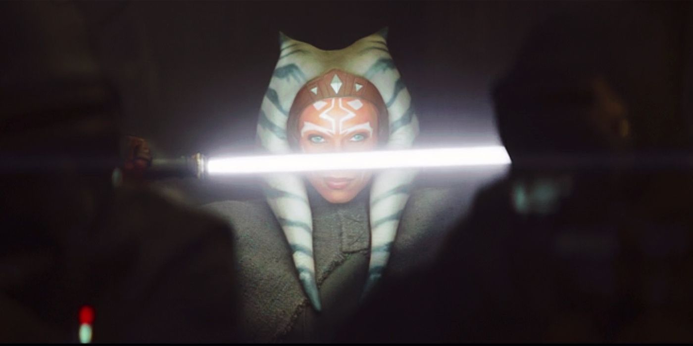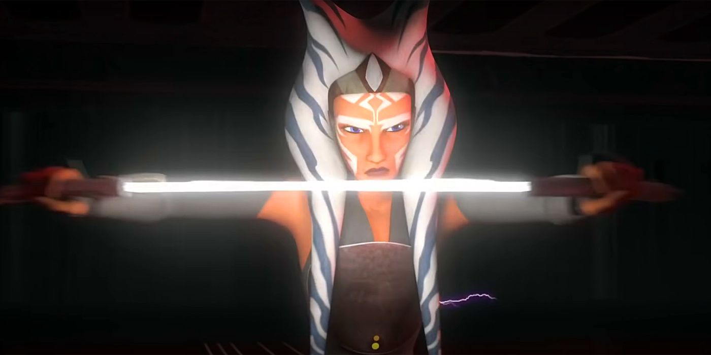 Años más tarde, Ahsoka realiza el movimiento de nuevo en Corvus, y muchos lo identifican como una firma de mala muerte. Mientras lleva a cabo su cruzada en el área del magistrado, Ahsoka es perseguida por soldados y droides. Mientras los droides buscan a los antiguos Jedi, ella aparece detrás de ellos en un callejón oscuro y realiza el mismo movimiento, encendiendo las armas y cortándolas. Es un bonito guiño del presentador de Rebels y co-creador de Ahsoka Dave Filoni, que también dirigió este episodio, recordándonos lo fanático que es de Ahsoka.