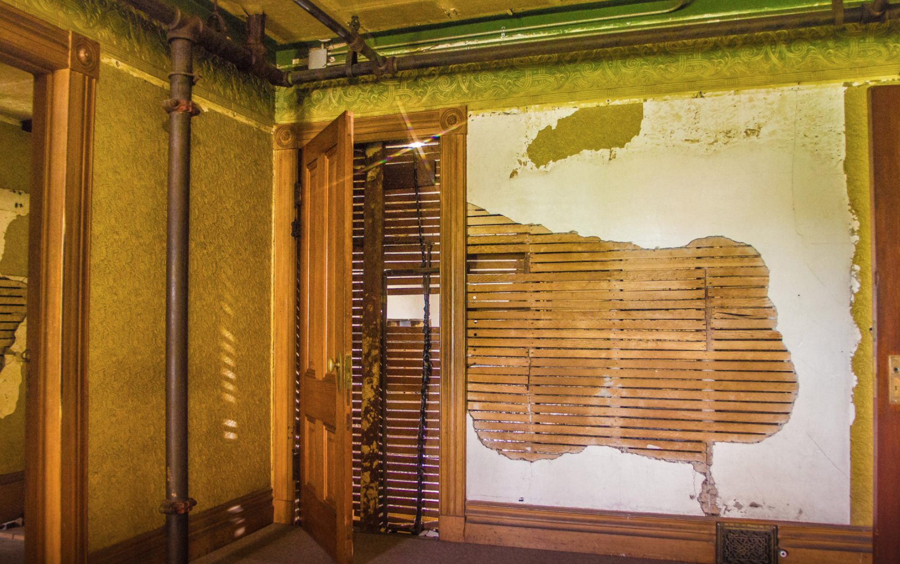 Hay espíritus acechando en los pasillos de la mansión Winchester. Pero ciertamente hay suficientes puntos de vista inquietantes en el interior: una escalera que conduce a ninguna parte, un motivo repetido del número 13 decorado con elaboradas decoraciones o una puerta de segundo piso que se abre al vacío.