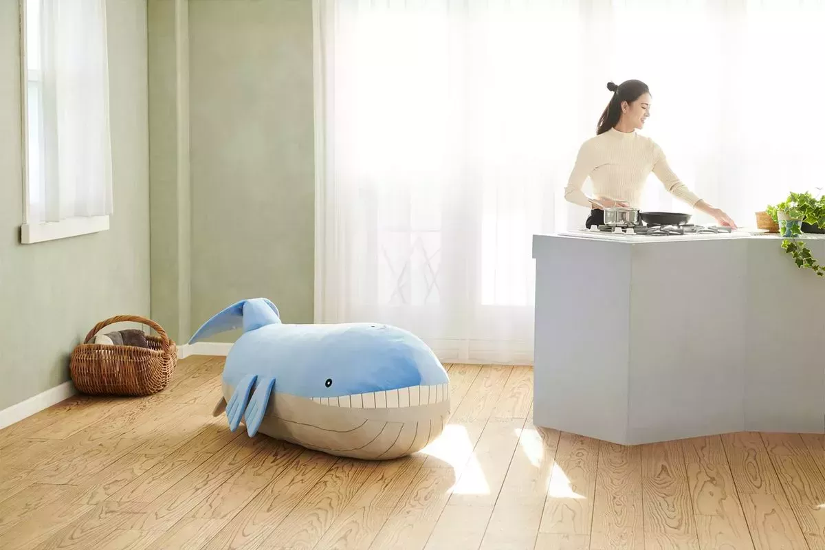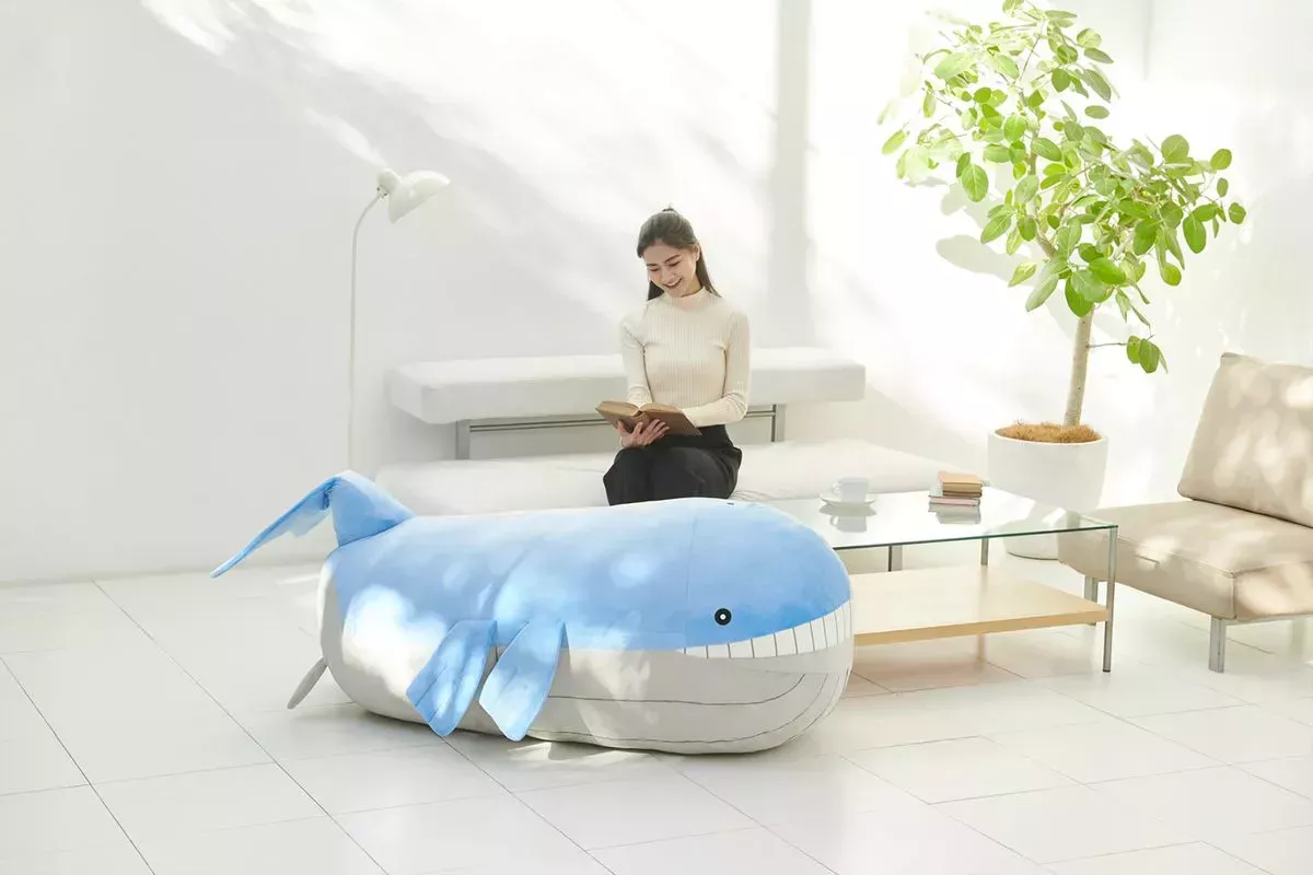 El nuevo peluche de Wailord es mucho más pequeño que un Wailord real: aproximadamente una décima parte, según la descripción oficial del producto. Como se ve en las fotos de abajo, es perfecto para leer, por ejemplo, un ejemplar antiguo de next to, o como compañero mientras cocinas una comida para uno cuando tu apartamento tiene una política de no mascotas.