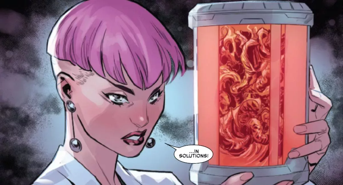 La Corporación Beyond ha fabricado multitud de armas devastadoras a lo largo de los años. Dehecho, durante su introducción inicial en Nextwave, de Warren Ellis y Stuart Immonen, la oscura organización había secuestrado a varios héroes y los había desplazado a otra realidad en un intento de probar y desarrollar armas de destrucción masiva tan devastadoras como inusuales. Además, los recursos de Beyond son efectivamente ilimitados, por lo que la idea de que tuvieran su propio simbionte para experimentar con él o criar otros nuevos no es tan descabellada. Por otro lado, lo que se ve en el último número también podría ser la raíz de la masa de zarcillos villanos conocida como Rizoma que Ben y Miles derribaron sólo unas páginas antes. Por supuesto, lo que ha desarrollado Beyond no es tan importante como lo que planean hacer con él, que presumiblemente incluye acabar con la competencia.