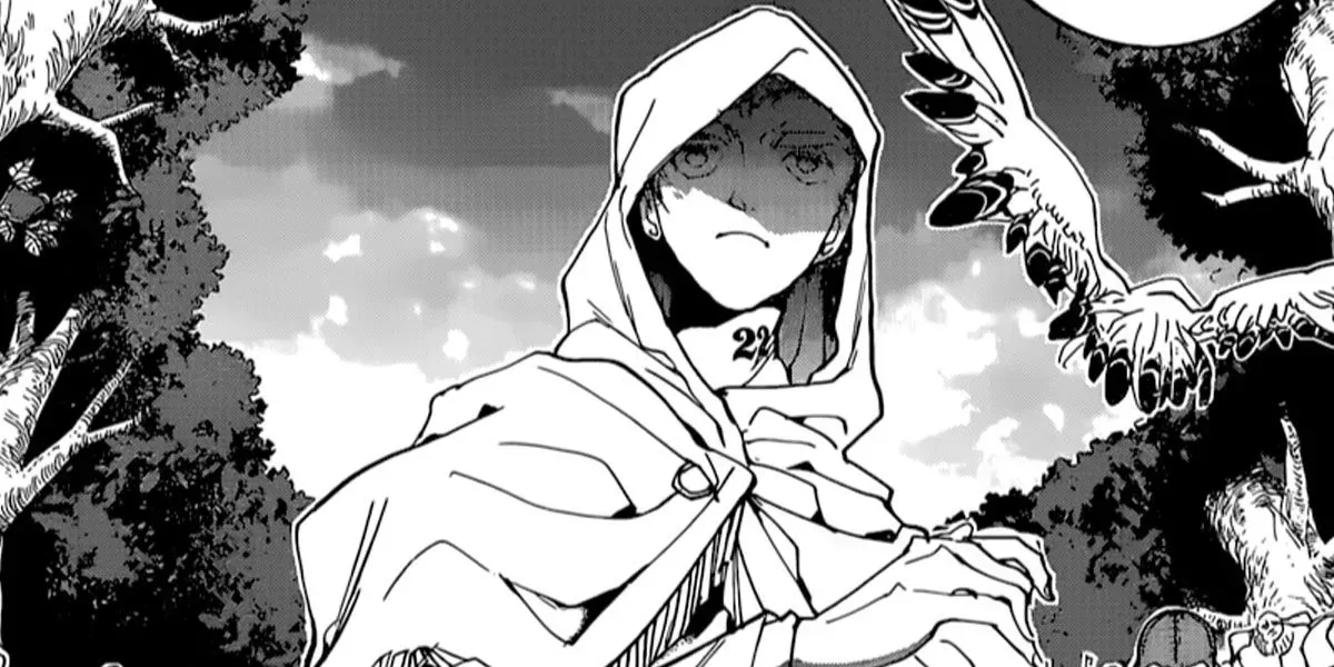 En sus últimos momentos en Grace Field, Norman se despidió de su familia. Emma trató de detenerlo por última vez diciéndole que corriera mientras intentaba destruir el rastreador en su oreja. Sin embargo, él pudo detenerla, lo que provocó que ambos discutieran frente a todos sus hermanos menores que no entendían lo que estaba pasando. Isabella detuvo la pelea amenazando a Emma. Después de llevar a Norman a la puerta, le pidió que esperara en una habitación. No sabía que su viaje acababa de empezar.