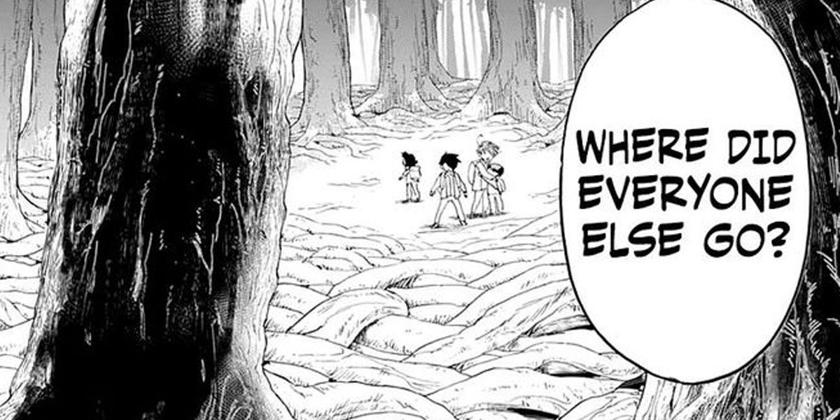 En el manga, el grupo de fugitivos de la Casa de Campo de Grace cae a través de las raíces de un árbol, una trampa hábilmente preparada por los árboles para atraer a los animales para que los consuman. Tiene sentido que, en un mundo desconocido, incluso la vida vegetal sea peligrosa.